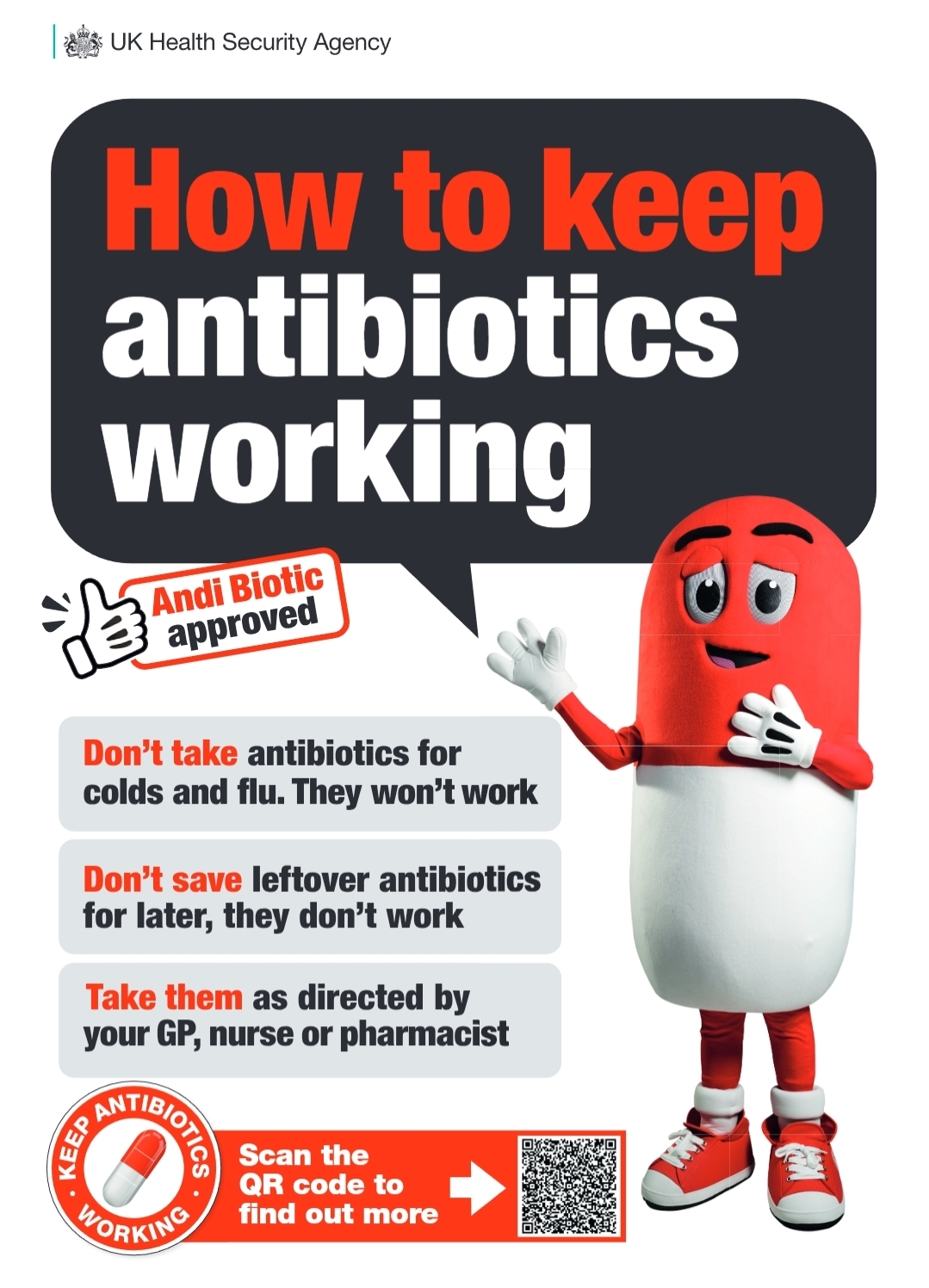She adds: “Resistance to antibiotics is a growing problem, but patients can help make a vital difference. We want everyone to be better aware of the correct use of antibiotics to keep them working effectively for generations.”